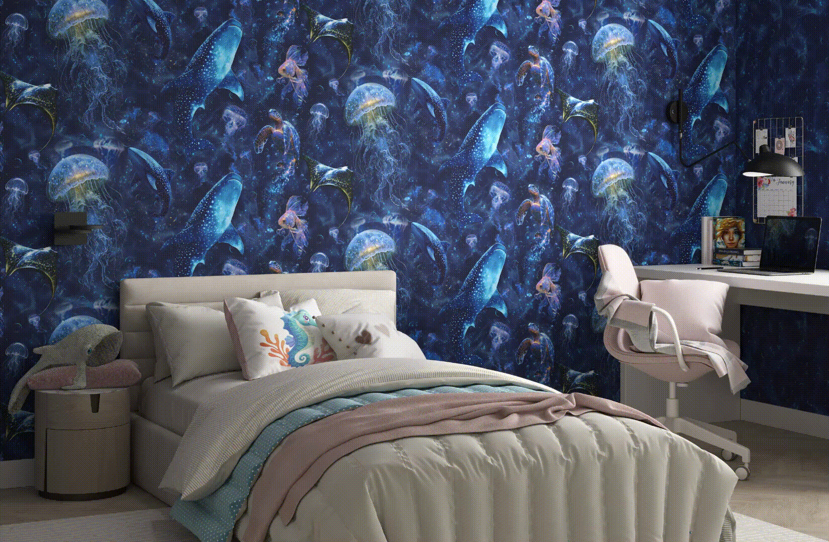 Оживите свой интерьер с помощью светящихся обоев в темноте.
