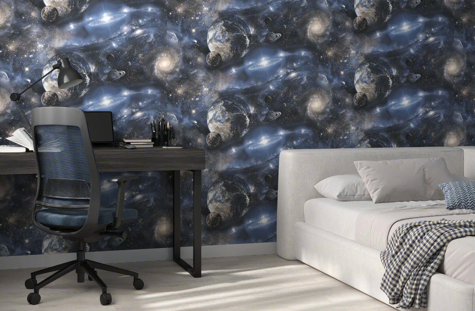 Оживите свой интерьер с помощью светящихся обоев в темноте.